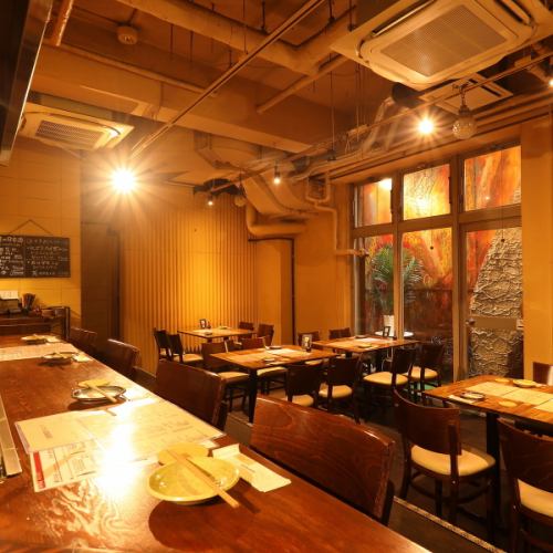 テーブル席は大人数で楽しめるスペースをご用意しております。ご友人や家族と共に、落ち着いた雰囲気の中で心温まる時間を過ごせます◎貸切も可能で、最大27名様までご利用可能ですので、宴会やお祝いパーティーにもぴったりです。ボリューム満点のコース料理を楽しみながら、楽しい会話を交わすひとときをお過ごしください。